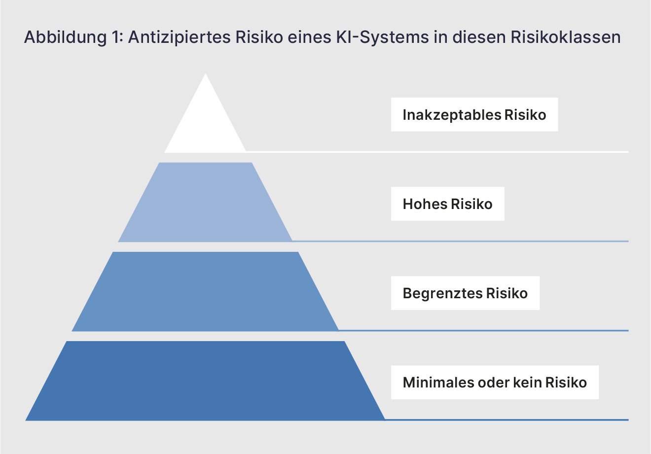 Die KI-VO verfolgt einen risikobasierten Ansatz: Je höher das antizipierte Risiko eines KI-Systems, desto strenger sind die rechtlichen Anforderungen. Unterschieden werden folgende Risikoklassen (s. Abbildung 1):
